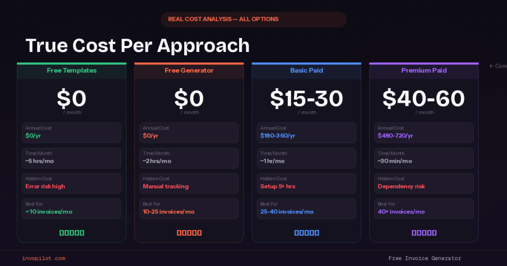 The break-even calculation depends entirely on your invoice volume and time value. For some businesses, free makes perfect sense. For others, paid software pays for itself in the first month.
